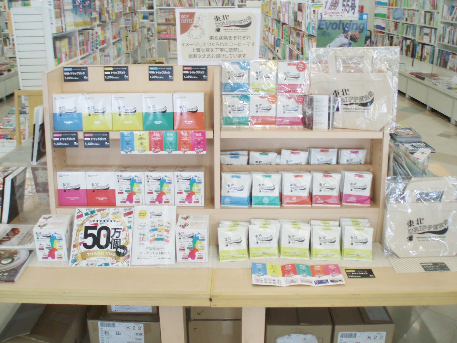 6県それぞれのオリジナルコーヒーを販売中。読書のお供にどうですか?