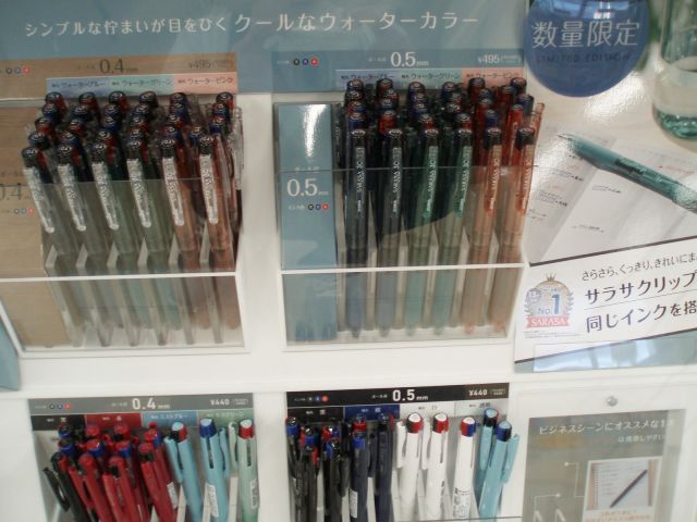 サラサクリップの3色ボールペン。限定でウォーターカラーも発売されました。